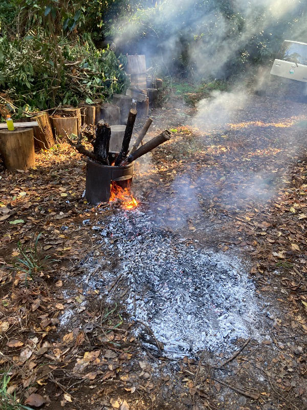 かなり落ち着いてきたので、釜の中に入れないで直接燃やしてしまおう