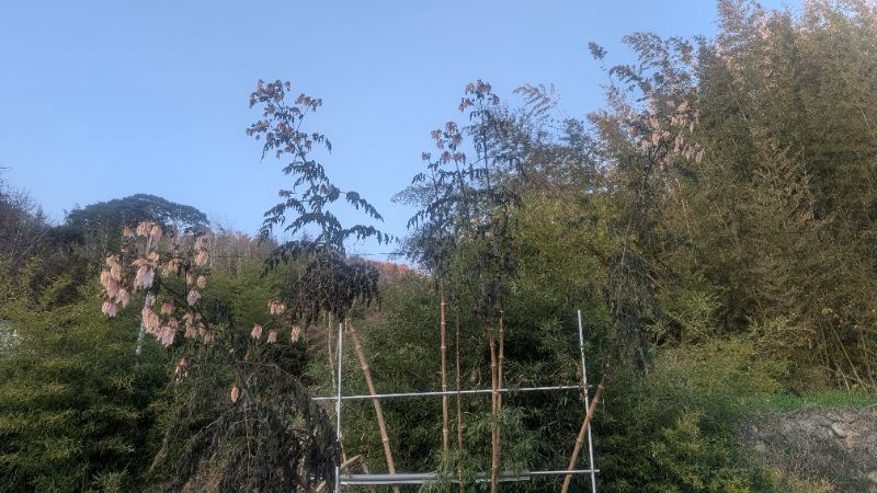 先日 日誌にあげた 背丈の低い皇帝ダリア(2m前後)の茎を明日頂きに行きます。