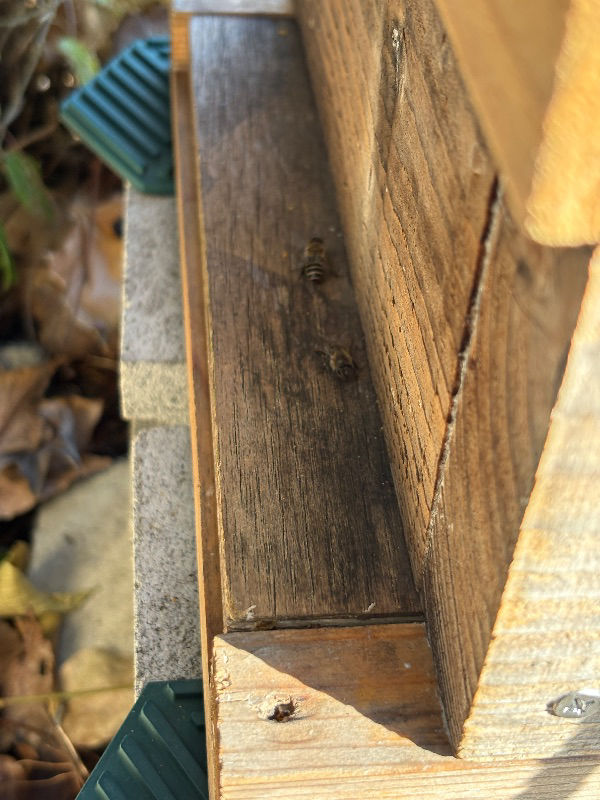 表口より少ないとはいえ、裏口を利用しているミツバチが混乱していた。