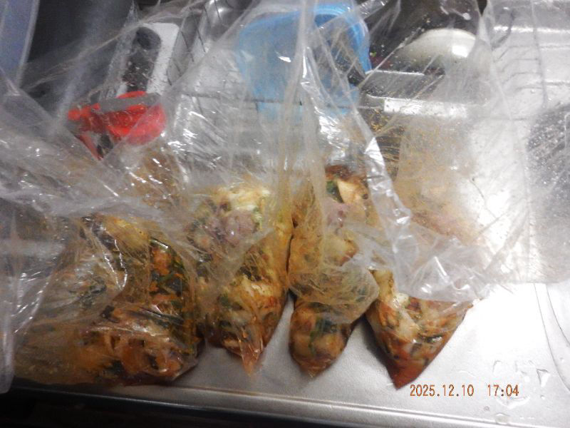 ボウルが足りないので、ビニル袋に入れますね。