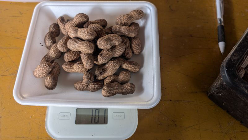 昨日 焙煎した落花生を 約100gで袋詰めします。