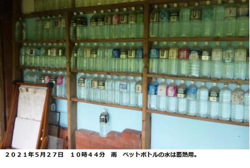 ペットボトルの水は暖かくなりますが、をの部屋を密閉しないと効果が少ないです。