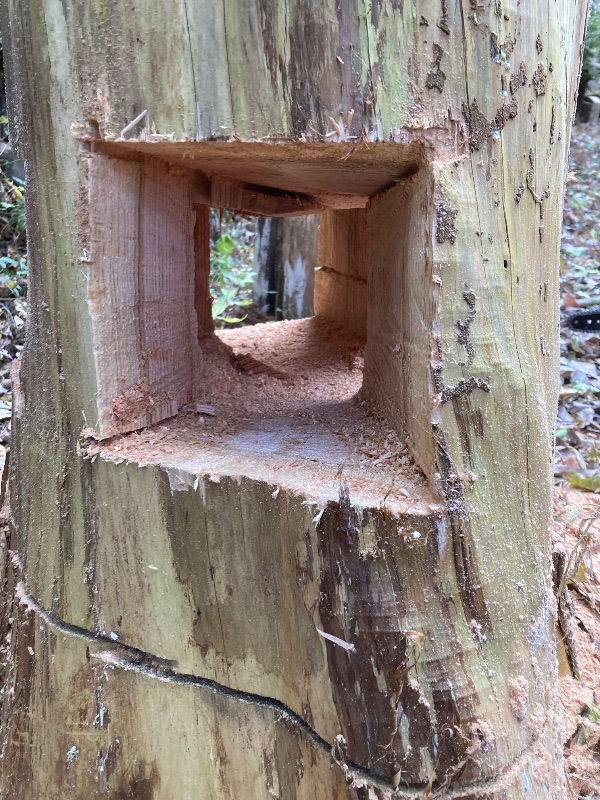 杉の木は芯の部分は固い、外回りは白身で柔らかい。