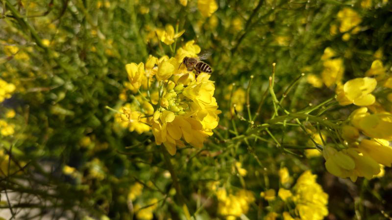 柔しくブンブン聞こえる羽音はニホンミツバチ。セイヨウミツバチはざっと見る限り見当たらない。この気温では来れないのかな。