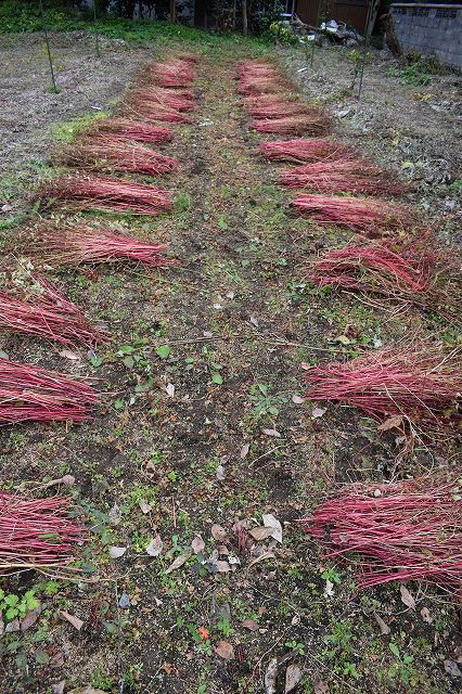 束ねて持ち帰り、納屋に吊るしてしばらく乾燥します。