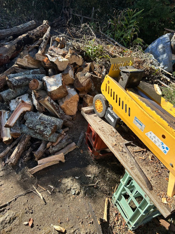 天気は回復したのですが?はっちゃんが飛ばないので、先日の 薪を 割り始めました。 一服の時 はっちゃんが 1匹 ローズマリに飛んできたので、箱を見に行ったが?飛びませんねえ?