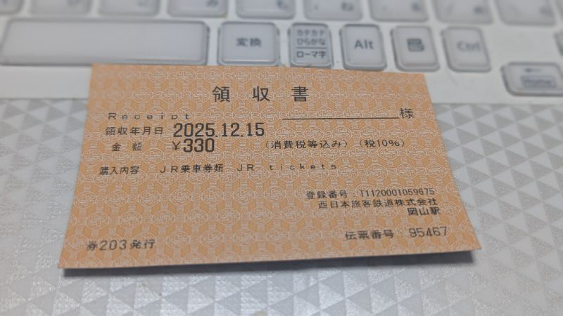 切符より領収書の方がでっかいです。 領収書はペラペラ紙で良いのでは!?
