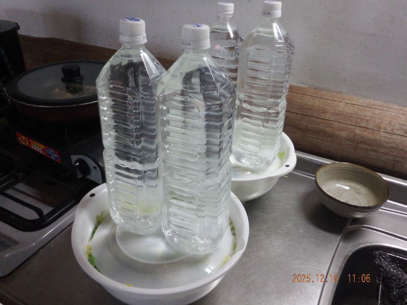 2時間後はペットボトルは立てますね。後1時間此のままですね。