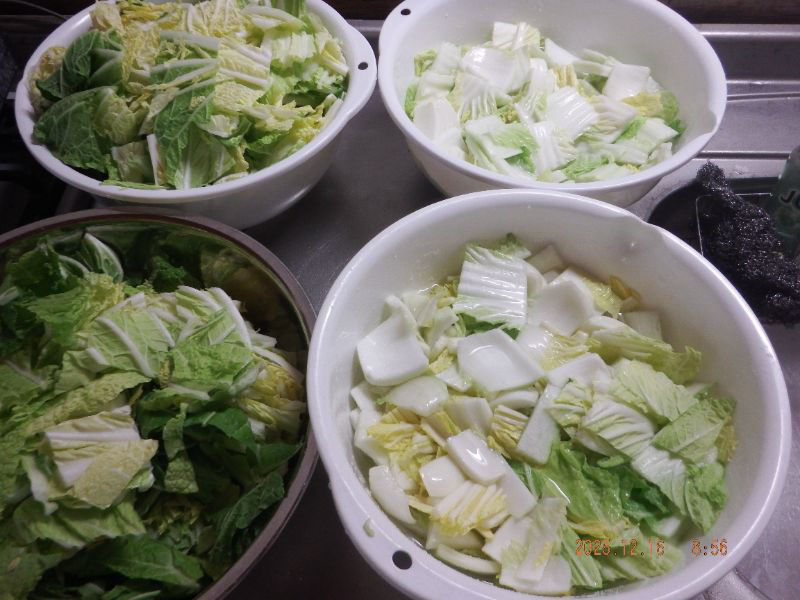 大根は塩漬けが短いので(40~50分)お昼からカットしますね。