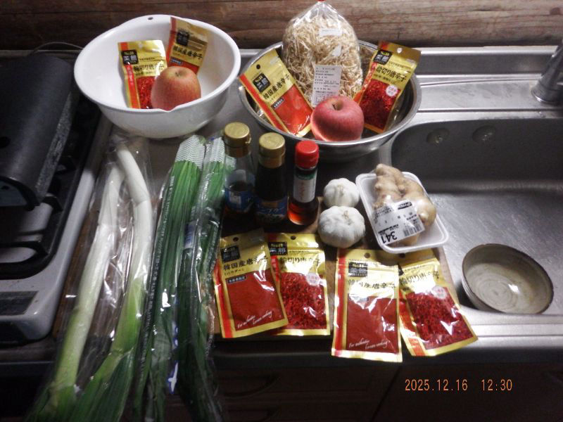 リンゴ、ニンニク、ショウガ、白ネギをペースト状にして居ますね。