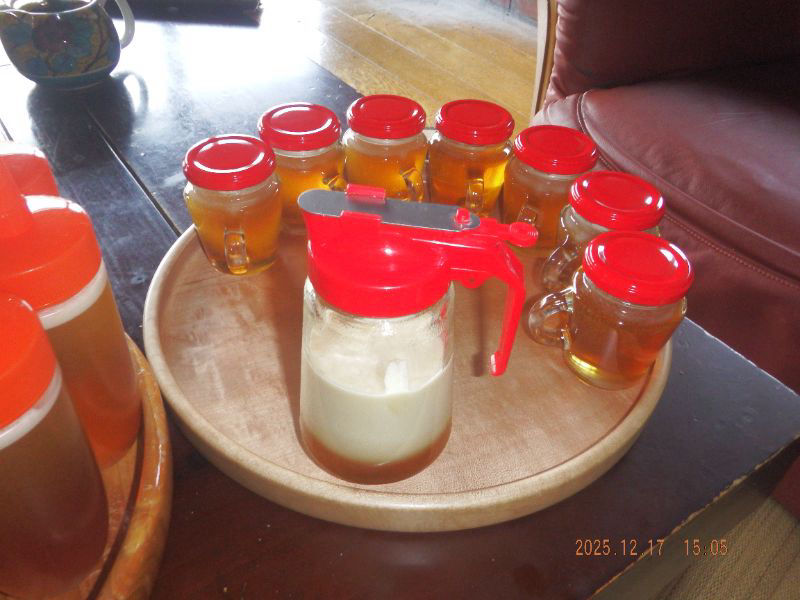 蕎麦蜜だけ取っ手付きの瓶に入れて居ますね。