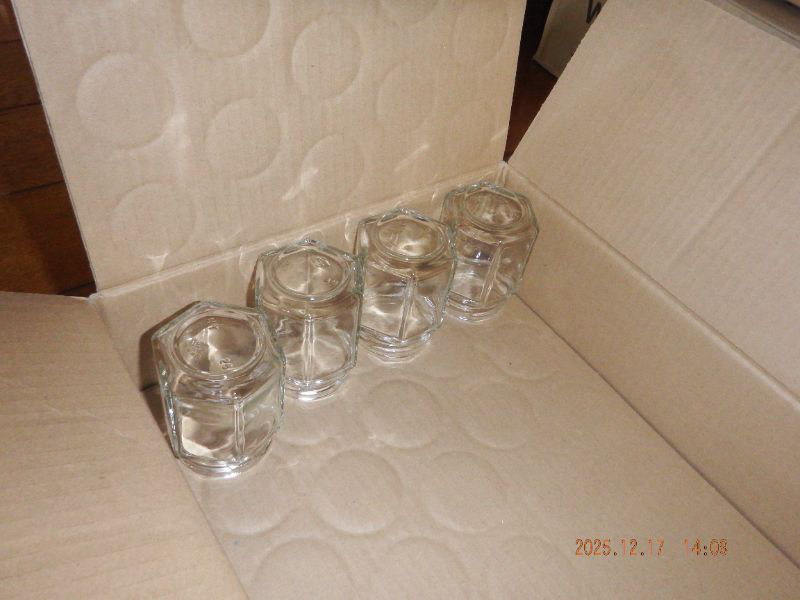 六角瓶100㏄(130g入れる)前は143g入れていましたが、今は130gに落ち着きましたね。