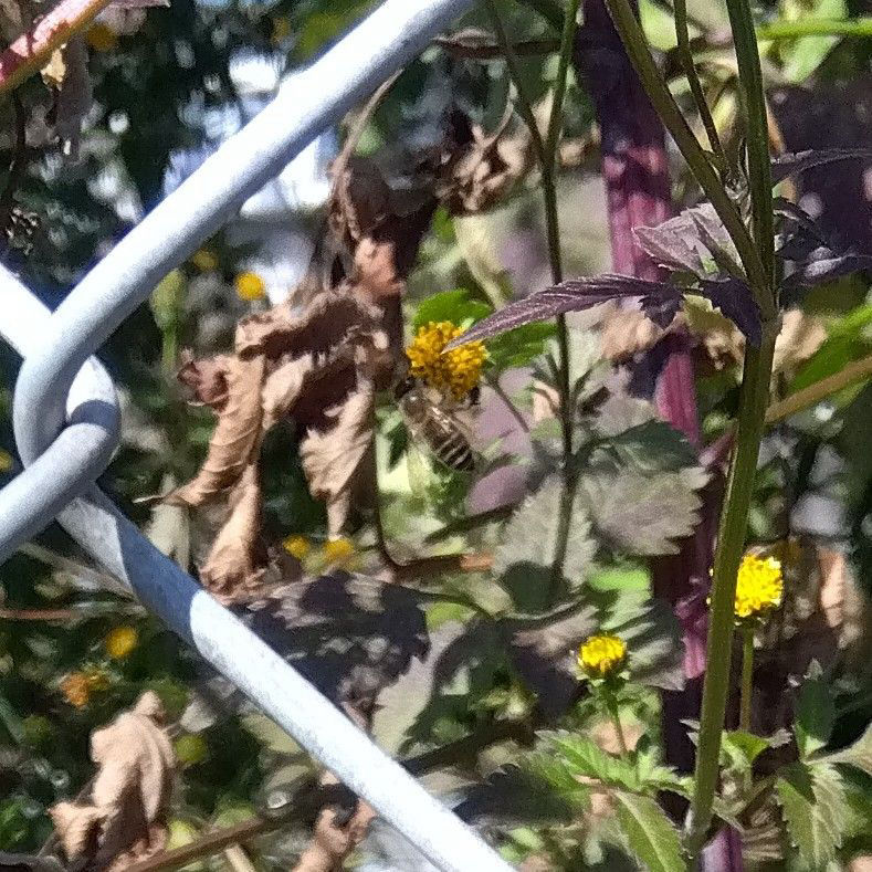 フェンス越しで距離もあったのでピントはイマイチですが、訪花記録です。