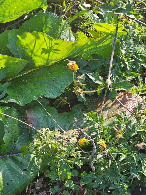 線路沿いに生えるコセンダングサ、まだ花が残っていることにびっくりしつつ観察…
