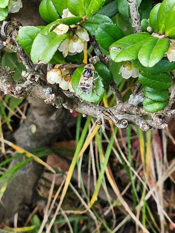 内部に入り込んで働く日本みつばちの羽音あり、姿はなかなか表面に見られず。