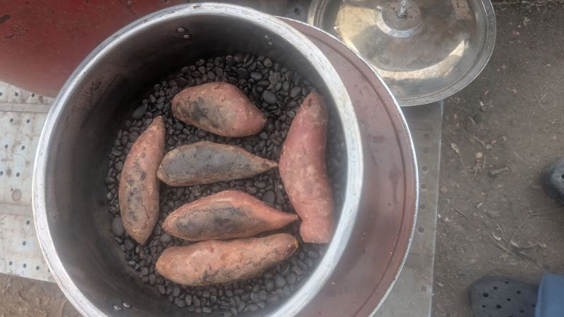 おかあちゃん曰く 焼き芋専用の鍋より 使い古しの鍋で焼いた方が美味しい・。