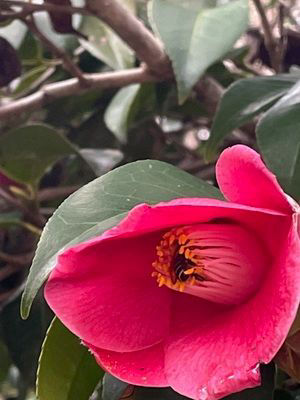 同じヤブツバキでも遺伝子の違いかこうして早咲きのものや春遅く5月頃に咲くものもあり、沢山の虫や鳥たちの命を繋いでいます。ニホンミツバチやそのほかの送粉生物がヤブツバキの多様性を拡げているのだと思います。もちつもたれつ、様々なものが縁起の世界の中で一瞬一瞬を懸命に生きています。