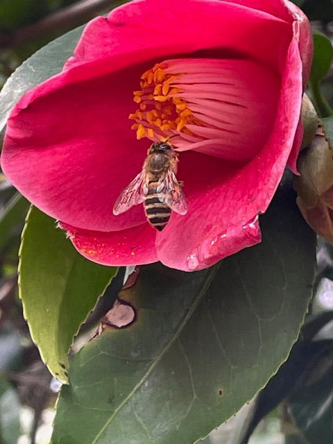 暖かい日が続いています。ヤブツバキが咲きだしニホンミツバチが沢山訪花しています。