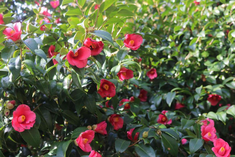 家の近くにはヤブツバキの林があり、樹齢が800年を超えるものもあります。ここらではヤブツバキは家々の境を表す木であり、我が家でもお隣さんとの境に数本大きなヤブツバキの木があります。