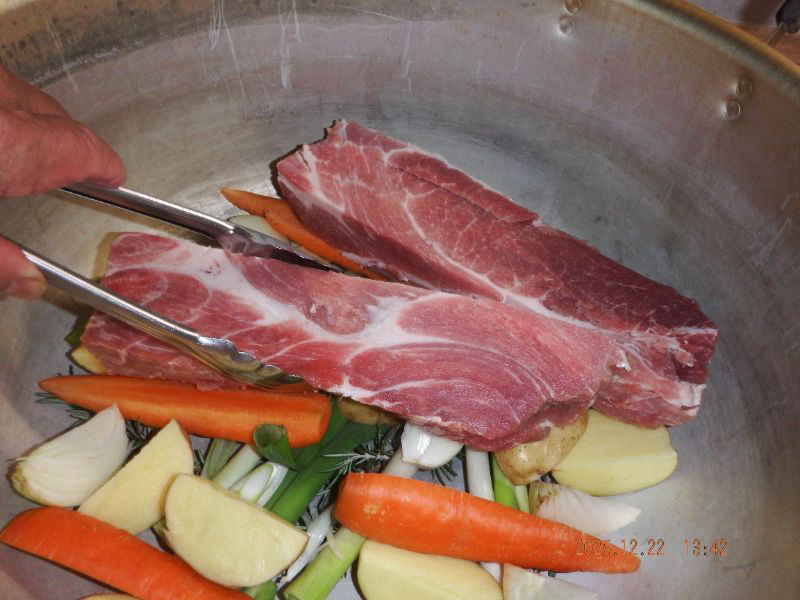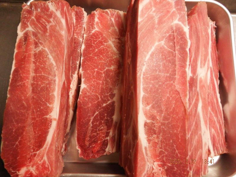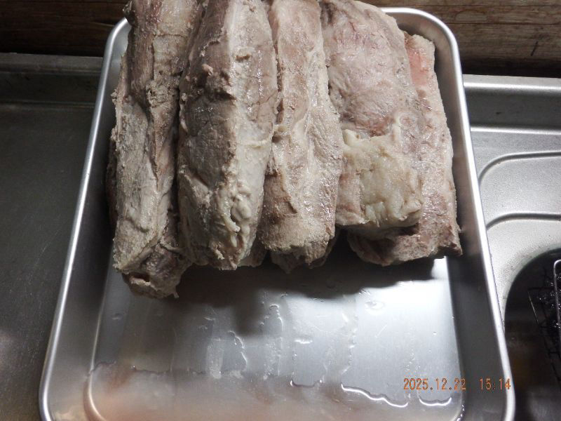 久しぶりのウンパイロウを作って居ますね。豚肩ロース肉:3kg×2本ですね。