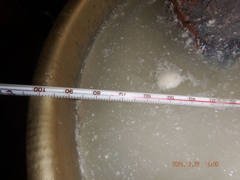 1時間後75度℃まで上がりましたね、肉が冷えていたので、時間が掛かりましたね。