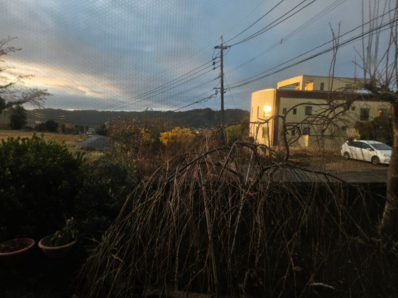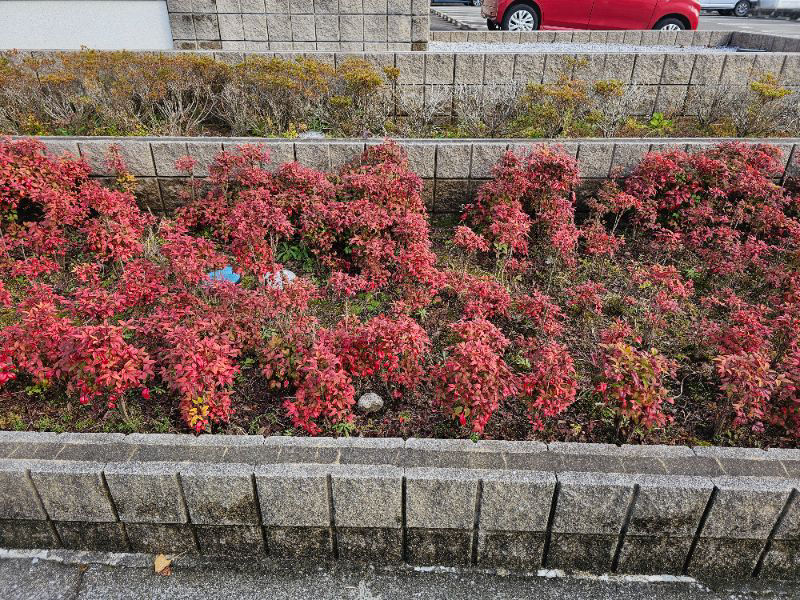 真向かいマンションに植栽された南天は赤く紅葉していましたが