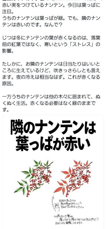 このナンテンは種類が違うので低く育ってるのですね。水不足で過酷な植栽場所のせいかと思ってました。