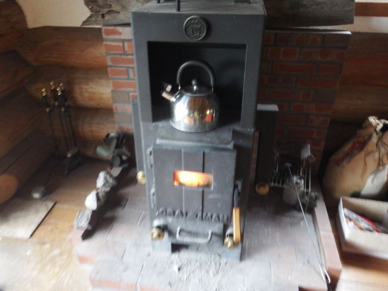 カットしている間に、薪ストーブでお湯を沸かして居ますね。