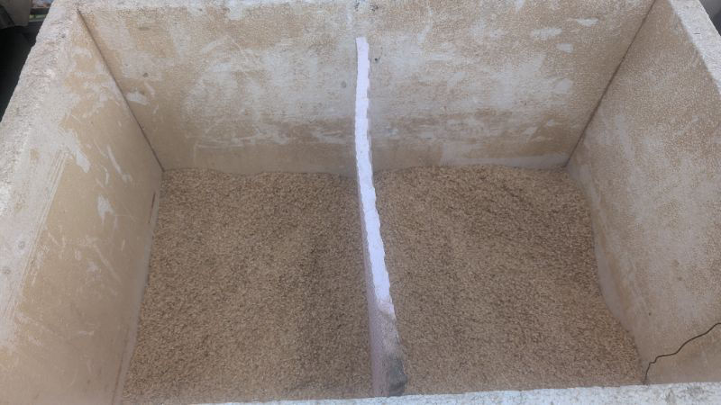 上からもみ殻をかけ発泡スチロールで蓋をしておわり。