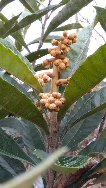 ⇩ 3本の枇杷の樹、うえて3年目かな、1本に蕾が出ている、早く咲いてちょ。