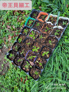 秋に128穴のセルに種まきした花の苗が狭そうにしているのを少し大きめのポットに植え替えをしました。