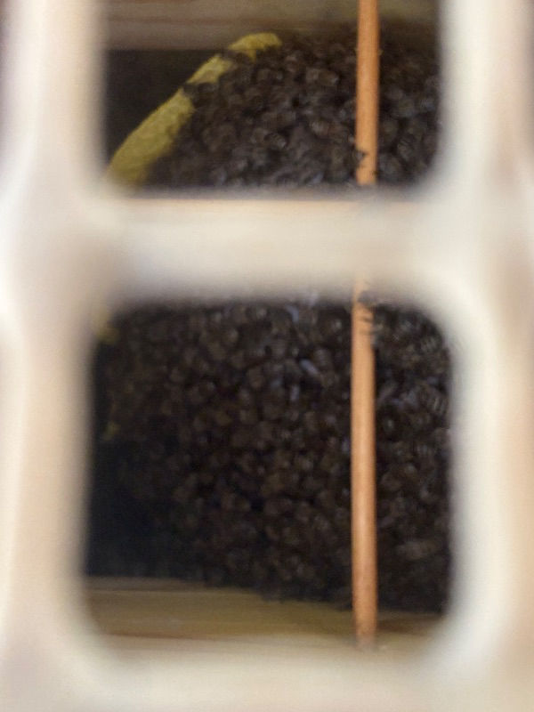 5段目巣落ち防止棒が見える辺りまでの群で今年採蜜もしていませんので貯蜜量も有る筈ですので多分大丈夫だと思えます。