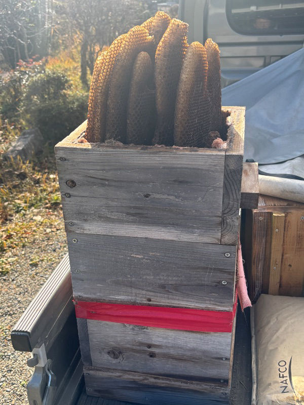日本ミツバチは森林組合の友人から2012年巣蜜をいただいたのと山荘の薪小屋に日本ミツバチがたくさん来ていたので何か自分でも知らないうちにやっていました。宜しくお...