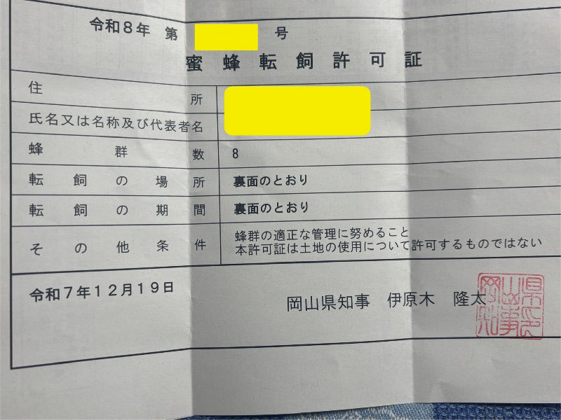 来年は6か所で飼育群数は8群として許可申請していたところ申請どおり許可と成りました。