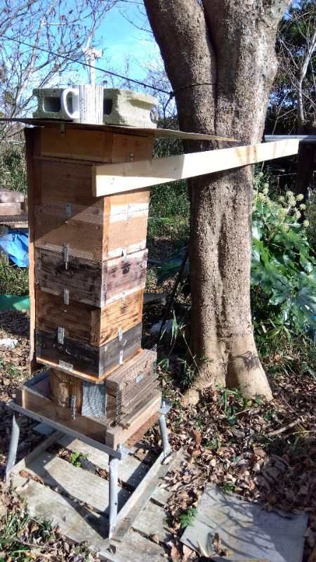 ⇩ 欅群、非常に活発であるが、最近、出入りが少ない。箱は冬場の陽ざしでよし、南向きの箱側面は暖かい。