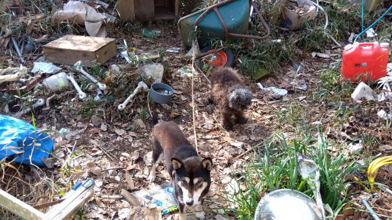 ⇩ 何時も蜂場(ハムラジ場)に同道する黒柴クララ嬢、ロミオ君(年で失明した)、1年間お供有難う。