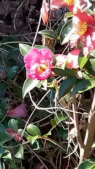 ⇩ 美しい花に行かず、ヤツデの蜜を吸ってササの葉で一休み。ヤツデ寒いのに頑張る。