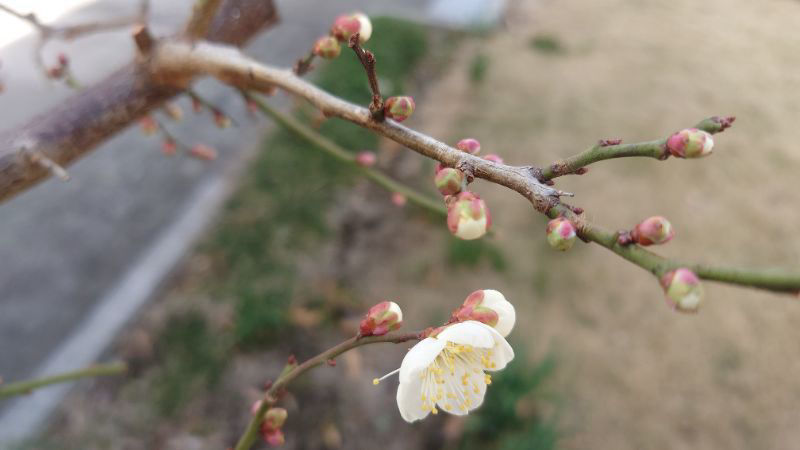 この梅はとても早咲きで、毎年この時期にひとり花を咲かせています。もう少したくさん咲き出したら訪花の写真を撮りたいです。