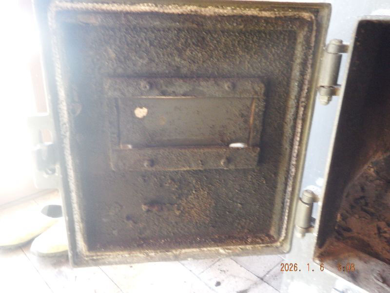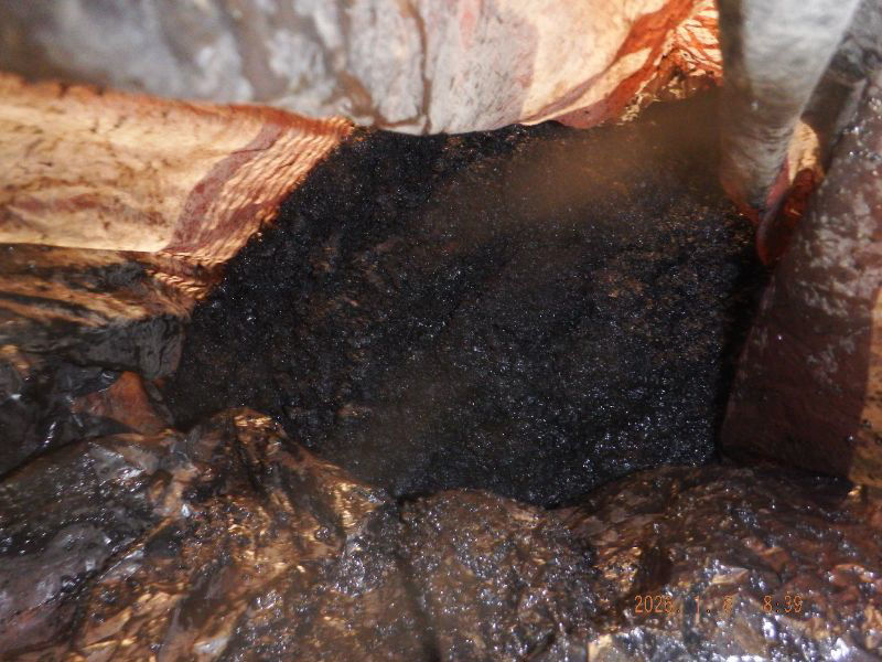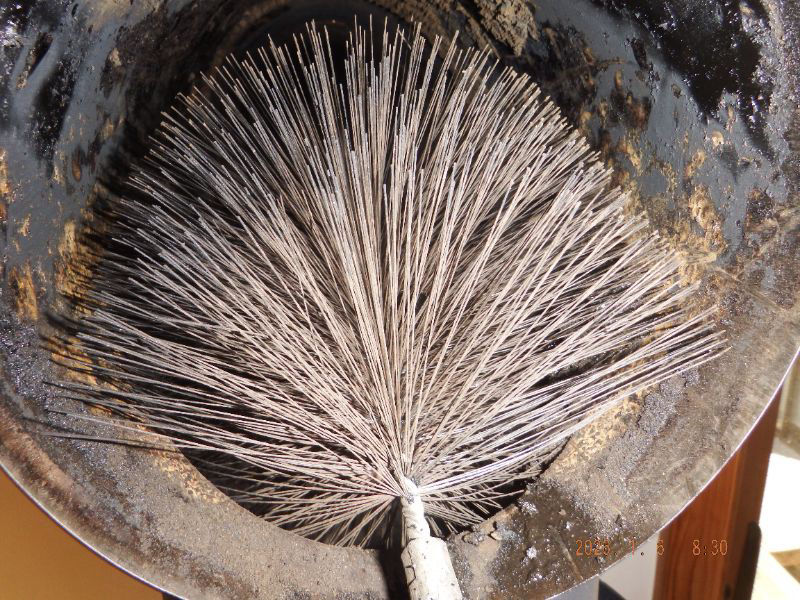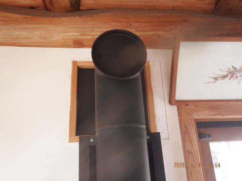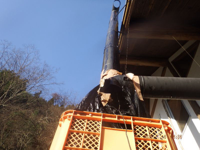 横の煙突の掃除中ですね。寒暖の差が有るので結露していますね。