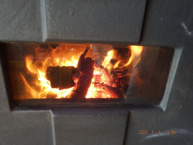 煙突掃除後の薪ストーブですね。全然燃え方が違いますね。