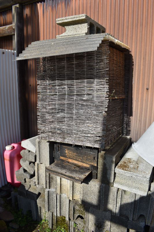 蜂友宅:移設先は6kmほどの距離にある作業場。トタン壁は巣落ちリスクがありますが、夏季は遮光するでしょう・・・。蜂友に手伝ってもらいながら、10:00に設置完了しました。