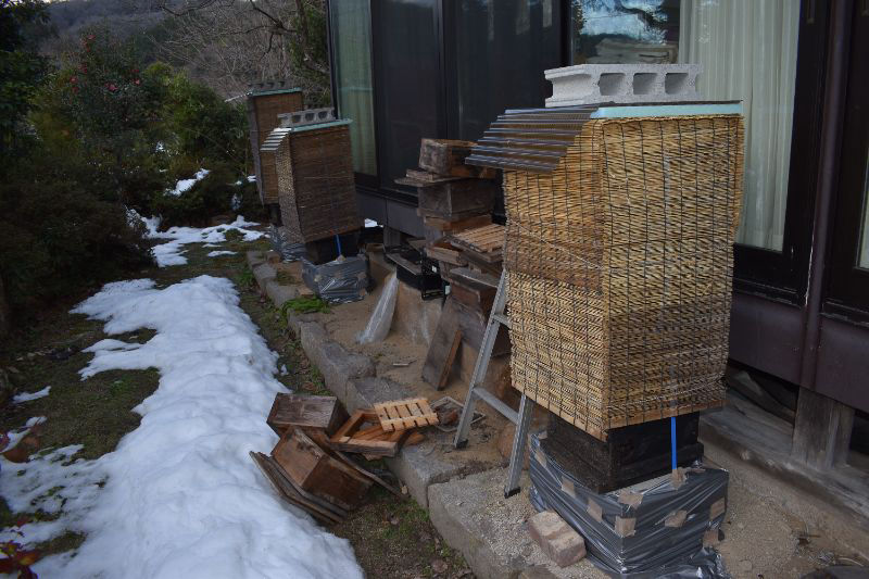 地震で散乱した巣箱を片付けておきました。