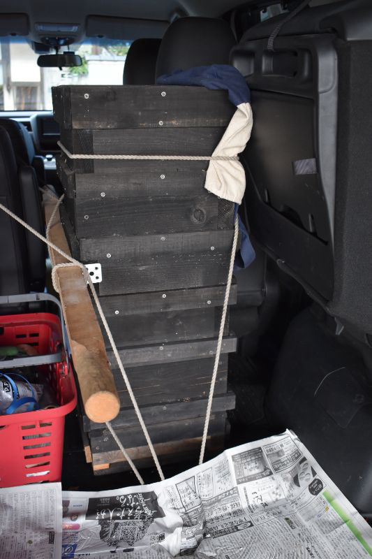 何時、余震があるかわからないので画像を撮らず、テキパキと巣箱を車に乗せてからの撮影です。