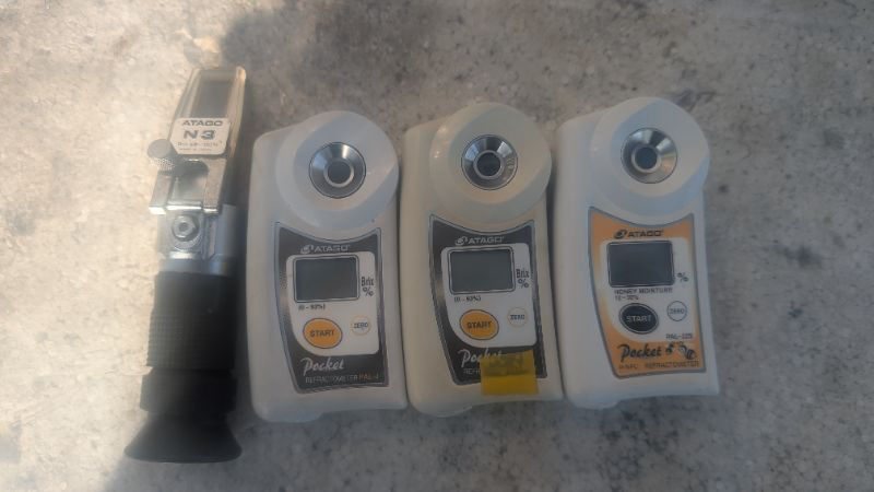 左 養蜂家さんの糖度計 中 私の糖度計 右 私の水分計