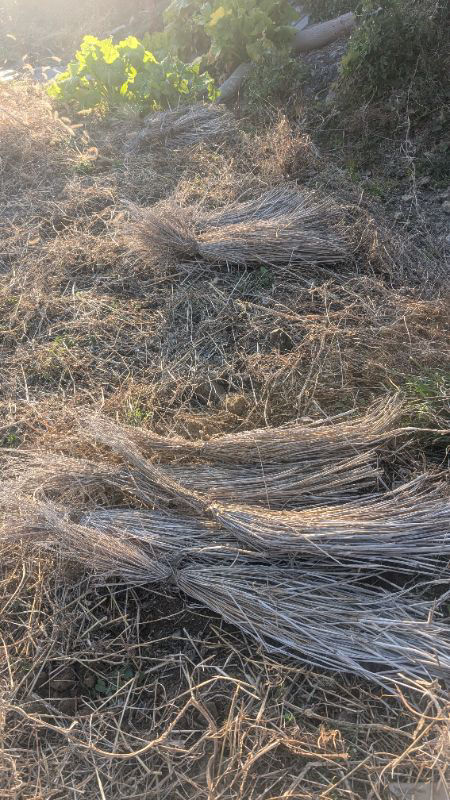エンドウ豆❓の霜よけに使っていたワラを再利用しています。