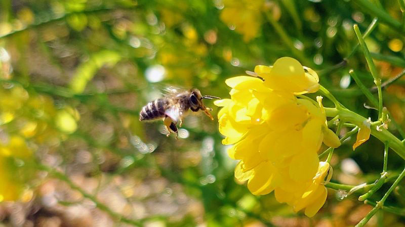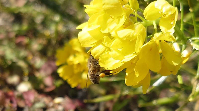 こんな大荒れのなか、働きに出る、いや戻ってきてるのか?そんなミツバチに無事を祈ります。