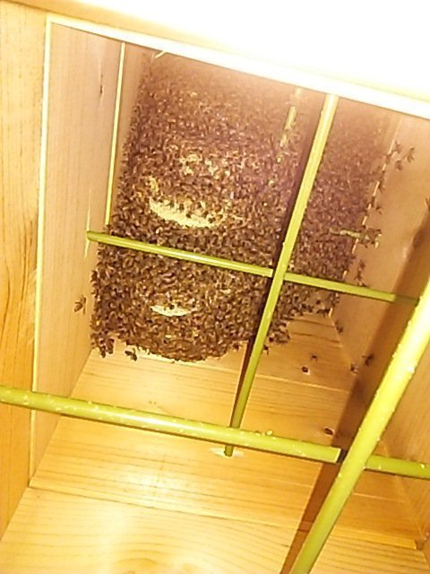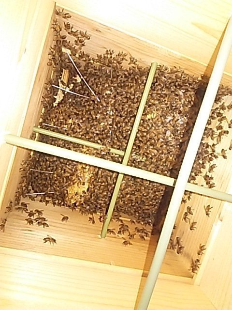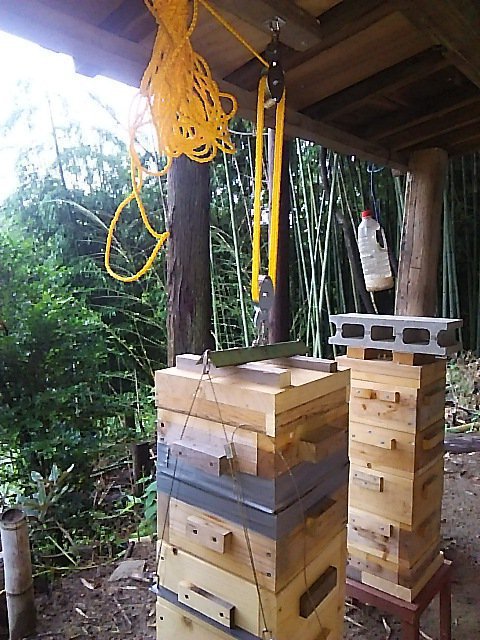 この一群に給餌しました。2群の方は素手で持ち上げると蜂を潰しそうなので後で滑車を付けて持ち上げ給餌する予定です。