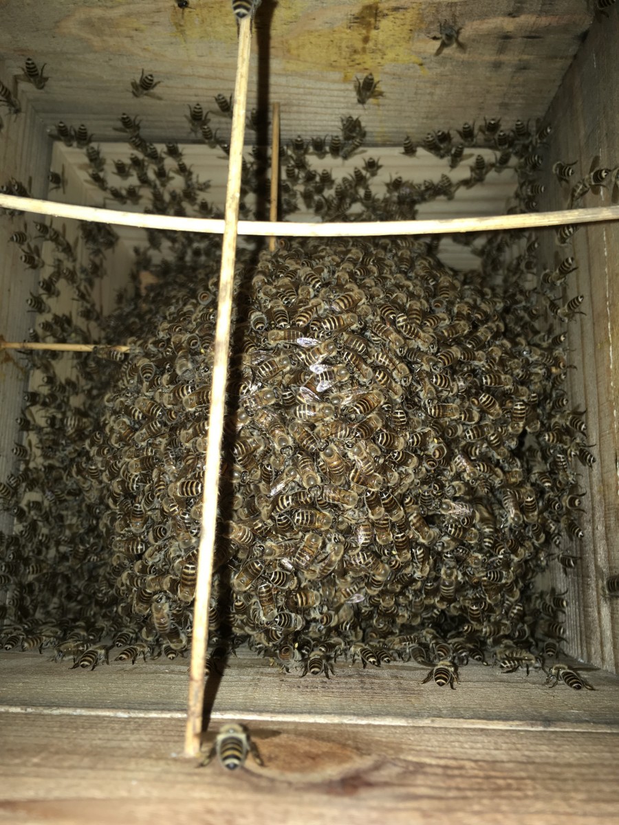 あと 4月後半頃に探索バチが来ていましたが、気候の影響か来なかった巣箱を放置していましたが、なぜか入居していました。うれしいのですがこれは夏分蜂?なのですかね