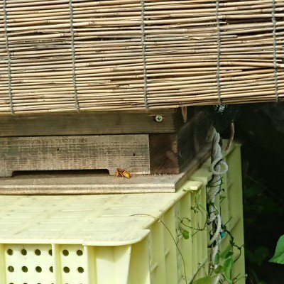 巣箱に網を掛けるか他で回答頂いたartemisさんのなわのれん的な兵器を試してみようと思います、ここ数日はキイロスズメバチ君を網で捕まえて足でぷちゅっとやる罪悪感に悩まされています。
