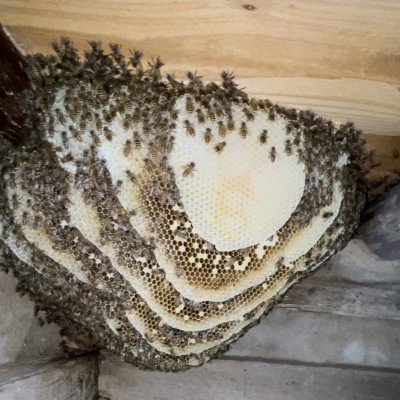 県内で似たような床下のニホンミツバチを床板ごと切って保護に成功されたレジェンドの皆さまからもコメント、アドバイスをいただいて光が見えてきた所になります。